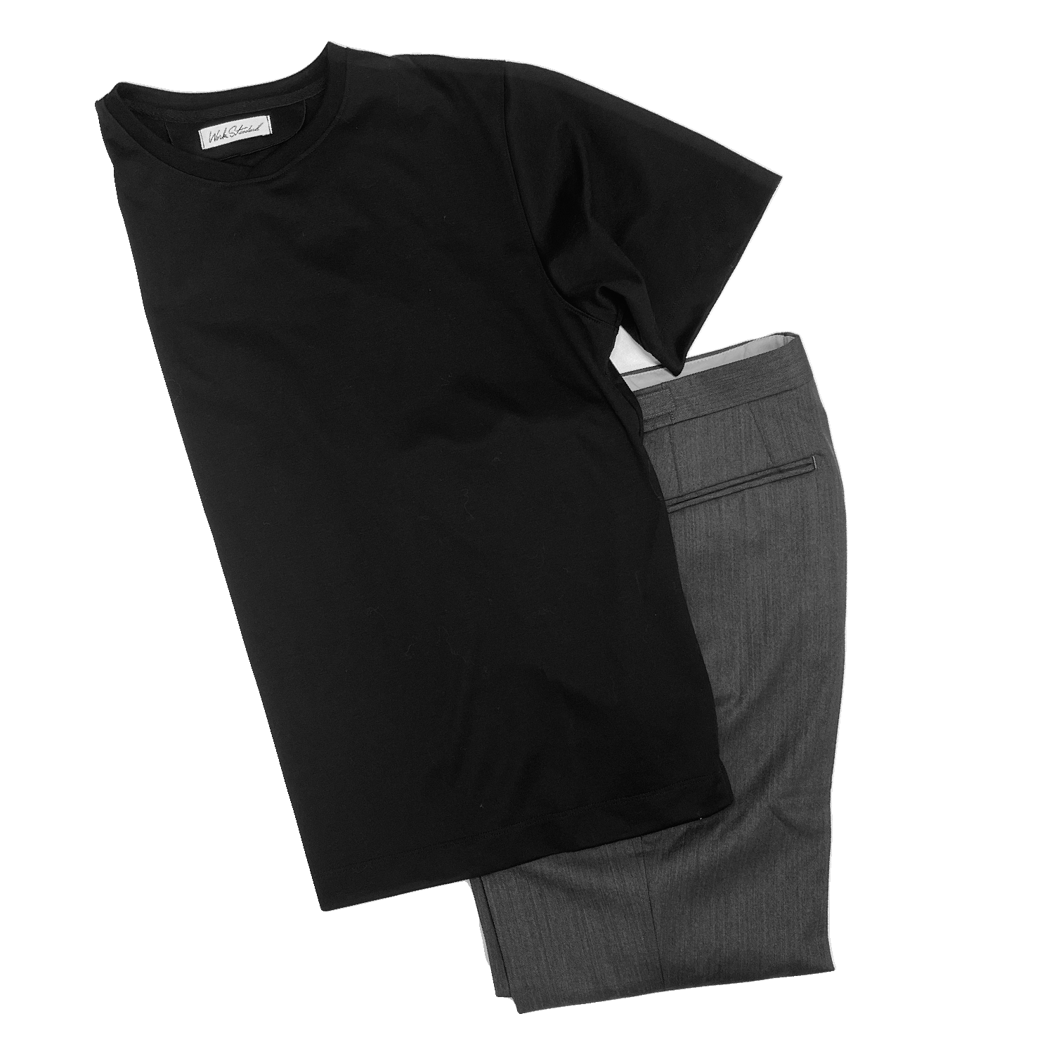 カジュアルなTシャツとは一線を画す素材感のため、ダークグレー系やダークネイビー系のジャケット・スラックスとの相性が抜群です。