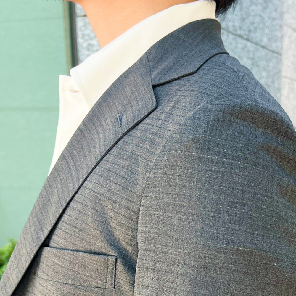 襟以外はNEW DRESS T SHIRTと全く同じシルエットとなります。肩周りと袖をジャケット着用を前提に立体的に設計しています。