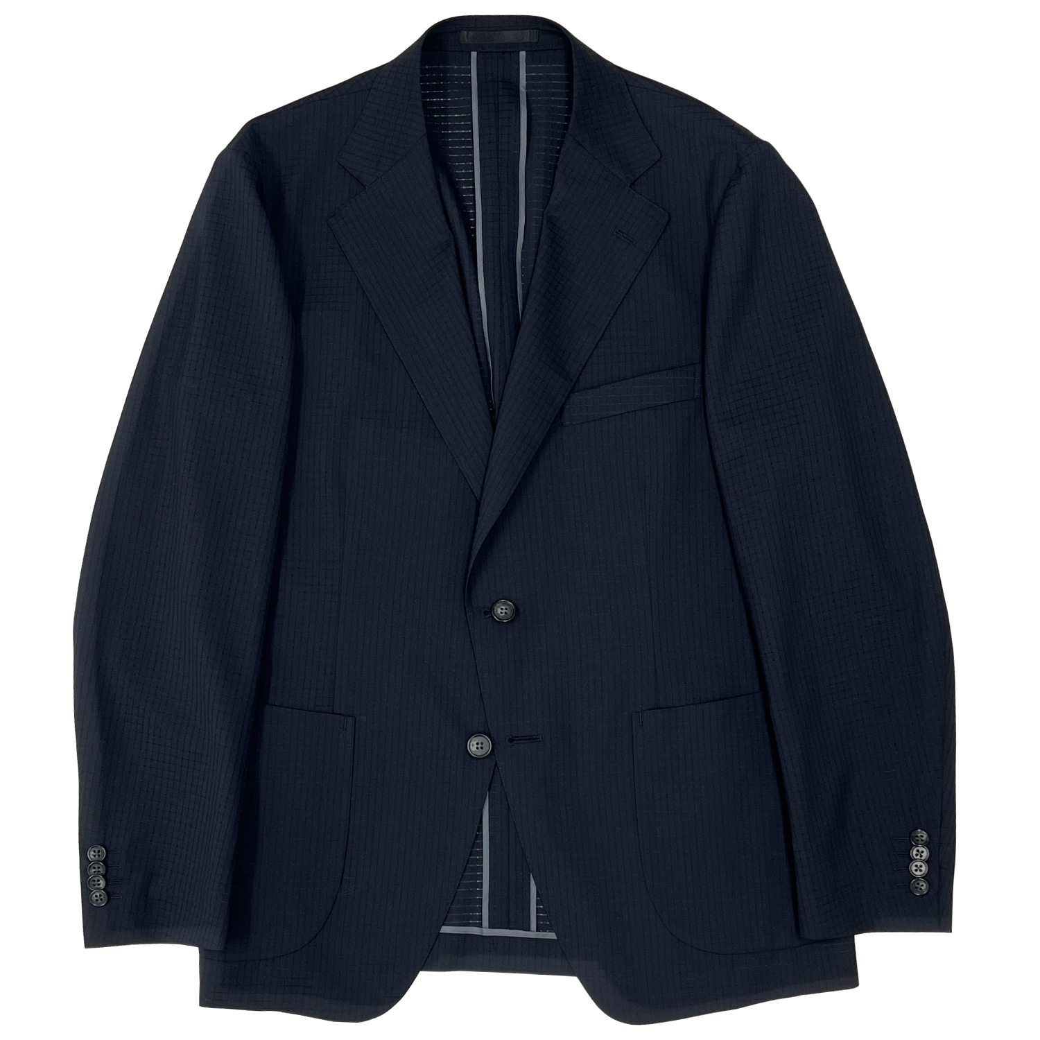 日本は高温多湿なのでできる限り薄くしたいところですが、通常の生地だとやはり暑さが出てします。テクニカルサマーウールの高い通気性があるからこそできる仕様です。
